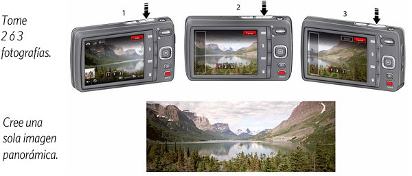 Utilice la función Panorámica para unir hasta 3 fotografías y crear una toma panorámica.