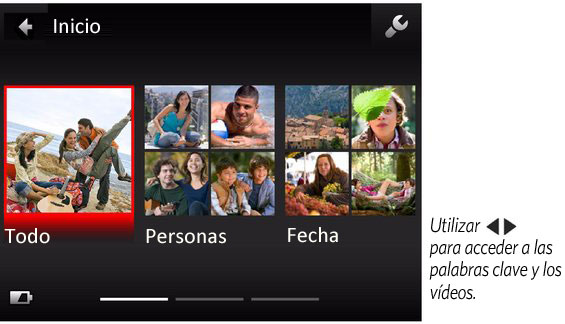 para ver todas las fotografías y vídeos o éstos ordenados por Fecha, Personas, Palabras clave o Vídeos.