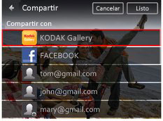 Contenido > Cómo compartir fotografías y vídeos > Cómo compartir mediante redes sociales y correo electrónico