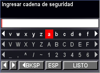 Si la red requiere una contraseña, utilice el teclado de la pantalla LCD para ingresar la cadena de seguridad. La cadena de seguridad distingue mayúsculas de minúsculas.