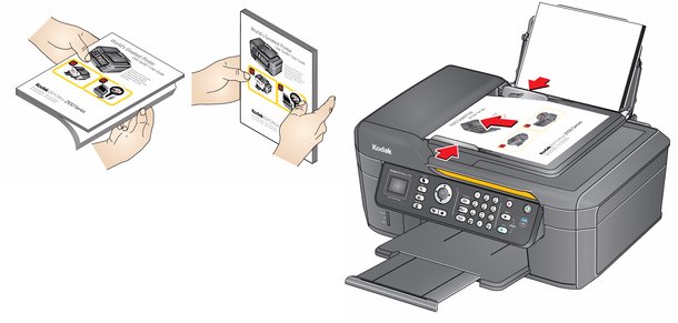 Airee y apile los originales, luego colóquelos en el ADF boca arriba, con la parte superior de las páginas primero.