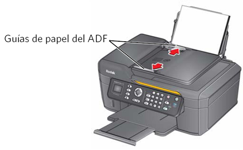 Mueva las guías de papel del ADF hasta que toquen el papel.