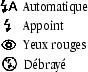 Les icônes indiquant l'état actuel de l'appareil photo s'affichent brièvement sur l'écran à cristaux liquides. Si une icône n'est pas affichée, cela signifie que la fonctionnalité correspondante n'est pas activée.
