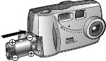 ATTENTION: La batterie ne peut être insérée dans l'appareil photo que dans le sens indiqué. Si la batterie ne s'insère pas facilement, repositionnez-la et réessayez. VEILLEZ À NE PAS FORCER sous peine d'endommager l'appareil photo. |