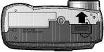 Sous l'appareil photo, faites glisser le volet de connexion à la station d'accueil jusqu'à ce qu'il s'ouvre.