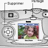 Lorsque vous prenez une photo, l'écran à cristaux liquides affiche cette photo pendant environ 5 secondes. Pendant ces quelques secondes, vous pouvez :