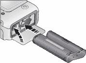 Faites glisser la cartouche couleur dans le compartiment, l'étiquette vers le haut et la flèche pointant vers l'imprimante photo. Enfoncez la cartouche dans le compartiment jusqu'à ce qu'elle s'enclenche.