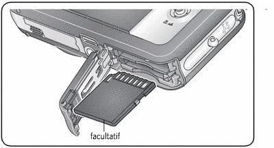 Votre appareil photo dispose d'une mémoire interne. Vous pouvez acheter une carte SD ou MMC pour stocker davantage de photos et de vidéos aux adresses suivantes : (www.kodak.com/go/v803accessories ou www.kodak.com/go/v1003accessories). Nous recommandons les cartes SD ou MMC de Kodak.