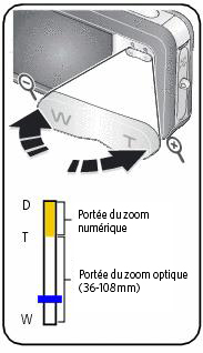 Dans tous les modes de prise de vue, le zoom numérique permet de multiplier jusqu'à 3 fois l'agrandissement obtenu avec le zoom optique. (Vous ne pouvez pas utiliser le zoom numérique pour la vidéo.)