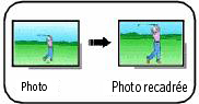La photo est recadrée. (La photo d'origine est conservée.) Les photos peuvent être recadrées une seule fois sur l'appareil photo. |