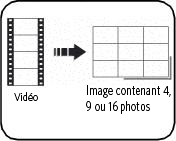 A partir d'une vidéo, vous pouvez créer une séquence contenant 4, 9 ou 16 photos et pouvant être imprimée au format 10 cm x 15 cm (4 po x 6 po).