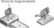 Commencez par éteindre l'appareil photo. Laissez la batterie en charge jusqu'à ce que le témoin de charge s'éteigne (3 heures max.). |