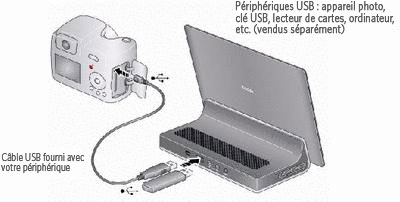 Connexion d'un appareil photo numérique ou d'un autre périphérique USB