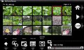 En mode miniatures (voir Visualisation en miniatures), touchez ou faites glisser votre doigt sous les flèches du curseur pour rechercher une photo, puis touchez