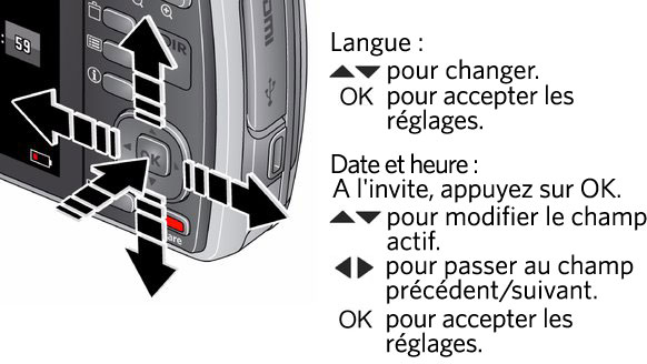 Table des matières > Réglage de l'appareil photo > Réglage de la langue, de la date et de l'heure