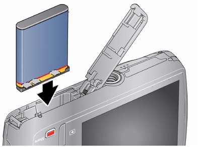 Table des matières > Réglage de l'appareil photo > Installation de la batterie KLIC-7006