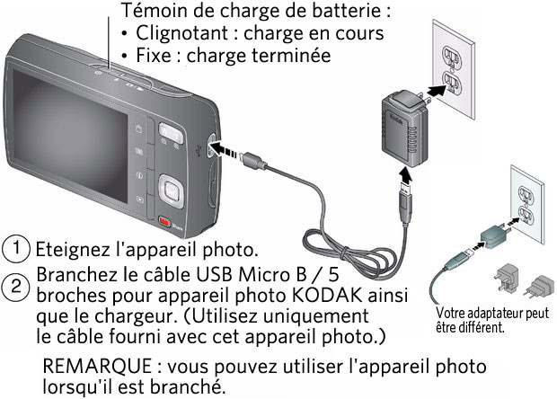 Table des matières > Réglage de l'appareil photo > Charge de la batterie