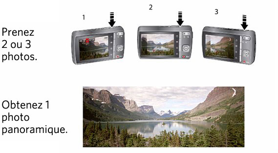 Utilisez le mode panoramique pour assembler jusqu'à 3 photos afin de constituer une scène panoramique.