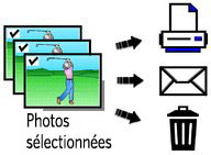 Une coche apparaît sur l'image. (Appuyez de nouveau sur OK pour retirer la coche.) Vous pouvez ensuite imprimer, transférer, supprimer les images sélectionnées, et plus encore. |