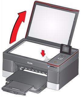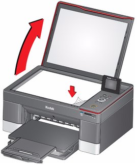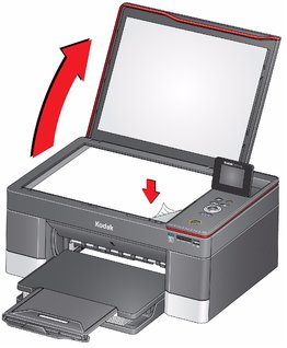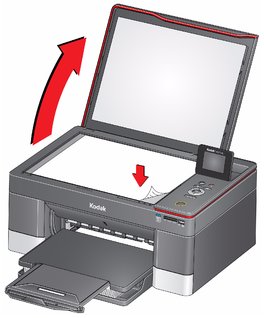 Soulevez le capot du scanner et placez le document, face vers le bas, dans le coin avant droit de la vitre du scanner.