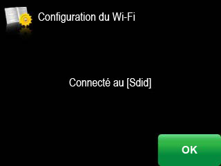 Si l'imprimante est connectée au réseau, le nom de celui-ci s'affiche ainsi que le mot CONNECTE.