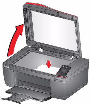 Soulevez le capot du scanner et placez le document ou la photo, face vers le bas, dans le coin avant droit.