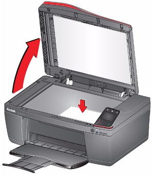 Soulevez le capot du scanner et placez la photo, face vers le bas, dans le coin avant droit de la vitre du scanner.