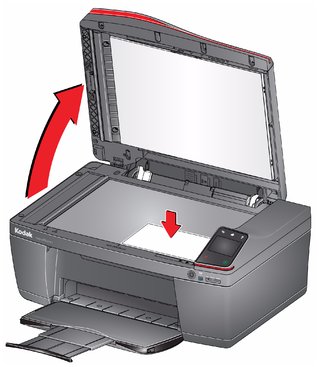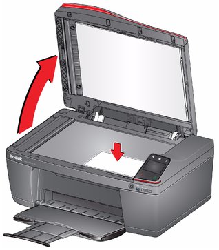 Soulevez le capot du scanner, placez l'original, face vers le bas, dans le coin avant droit de la vitre du scanner, puis fermez le capot.
