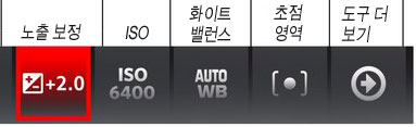 플래시 보정 - 플래시 밝기를 조절합니다. 노출 보정 - 노출을 조절합니다. 장면이 너무 밝을 경우에는 설정을 낮추고, 장면이 너무 어두울 경우에는 설정을 높입니다. 셔터 속도 - 셔터의 개방 시간을 제어합니다. (느린 셔터 속도에서는 삼각대를 사용합니다.) 조리개 - f-스톱이라고도 알려져 있으며 피사계 심도를 결정하는 렌즈의 개방 크기를 제어합니다.