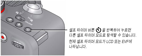 LCD 화면에 원하는 셀프 타이머 아이콘이 나타날 때까지 셀프 타이머 버튼을 누릅니다.