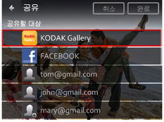 목차 > 사진/비디오 공유하기 > 이메일 및 소셜 네트워킹 사이트를 통해 공유하기
