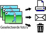 Gebruik de functie Meerdere foto's/video's selecteren als u twee of meer foto's en/of video's wilt afdrukken, overbrengen of verwijderen. (De functie voor het selecteren van meerdere foto's of video's werkt het beste in de modus Multifoto, Als miniaturen (multifoto) bekijken.)