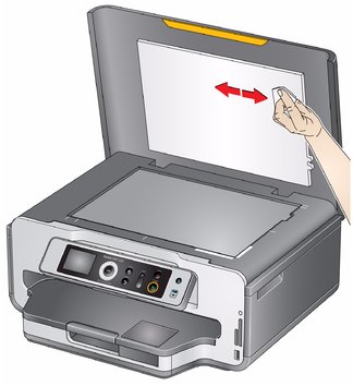Para limpar o vidro do scanner e o suporte de documentos localizado abaixo da tampa do scanner: