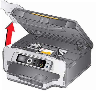 Levante a porta de acesso da impressora e aguarde o cartucho se mover para a posição central.