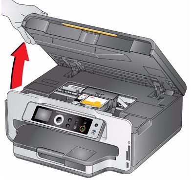 Levante a porta de acesso da impressora e aguarde o cartucho se mover para a posição central.