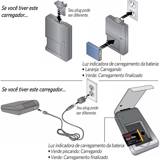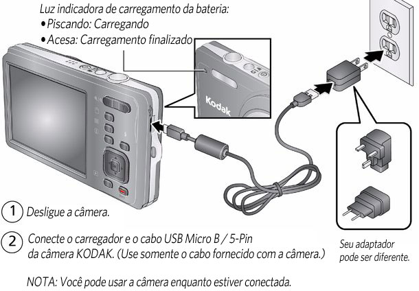 Sumário > Como configurar a câmera > Como carregar a bateria