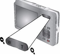 Pressione o botão Grande-angular (W) para visualizar as fotos e os vídeos como miniaturas. (Pressione novamente para ver miniaturas ainda menores.)