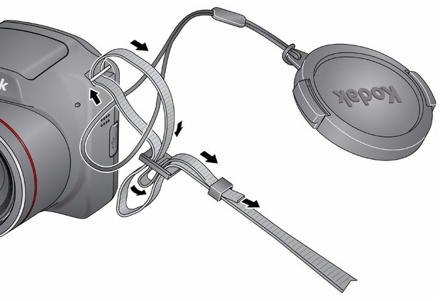 Содержание > Подготовка фотокамеры к съемке > Прикрепление ремешка