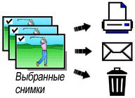 Выбранный снимок отмечается флажком. (Для удаления флажка снова нажмите кнопку OK.) Теперь можно печатать, переносить, удалять и делать многое другое с выбранными снимками. |