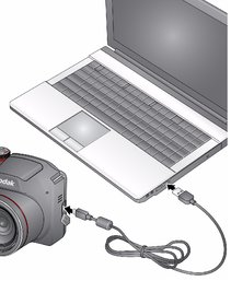 Подключите фотокамеру к компьютеру при помощи кабеля USB для фотокамер KODAK, модель Micro B / 5-Pin. (Пользуйтесь только кабелем, включенным в комплект поставки.)