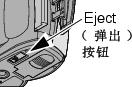 在相机底部,按照图示滑动Eject(弹出)按钮,取出照片存储卡。