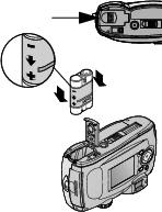 电池包仅限按照所示的方向插入。如果无法容易地安装电池包,调整电池包位置,重新尝试。 请勿用力压入。这样做可能会损坏相机。