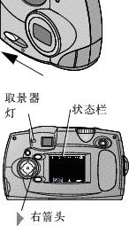 镜头延伸至“广角”位置,相机执行自检测时,取景器灯闪烁绿光。当取景器灯持续发出绿光(并且“模式调节”被设为 Still(静物) 或 Video(录像) )时,相机准备就绪,可以拍照或录像。 一则屏幕信息会通知您正在存取的存储位置:相机的内存或照片存储卡。请参阅选择内存或照片存储卡,了解有关存储位置的信息。 在 Still(静物)或 Video(录像)模式中,状态栏在 LCD 中短暂显示。 |