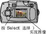 ,然后按 Select(选择)。 LCD 显示一个实况图像和状态栏。 |