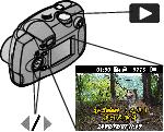 欲一次移动一张照片,按下并松开一个箭头按钮。欲在照片中快速滚动,按住一个箭头按钮。