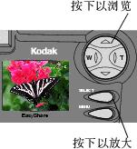 放大的照片和放大级别显示在 LCD 屏幕上。 |