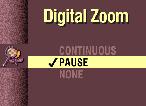 使用 Pause(暂停)设置时,按住四向箭头按钮上的远距拍摄(T),将其推至最远的位置,即光学变焦的极限。松开按钮,然后再次按至 T 位置。