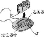 将相机放在相机底座中,并向下推,使之安放在连接器上;底座定位器针插入相机三脚架插口中。