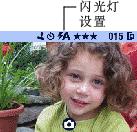选择一个闪光灯设置时,当前相机设置显示在屏幕的下半部分。 |