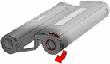 按下墨盒卷轴,然后按箭头所指方向旋转卷轴,取下彩色墨盒中的松开部分。